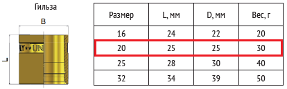 Общие характеристики Гильзы аксиальной 20 мм: