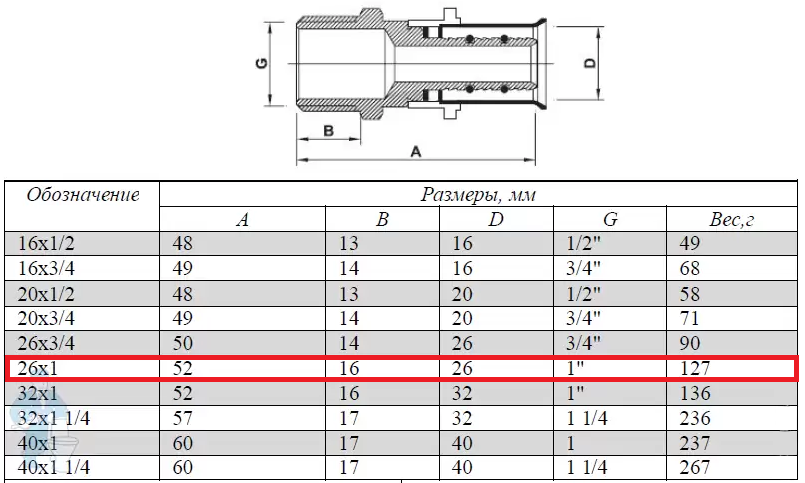Размеры муфты—26х1"