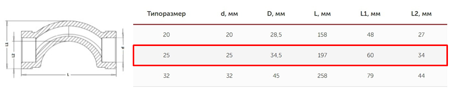 Диаметр трубы - 25мм.